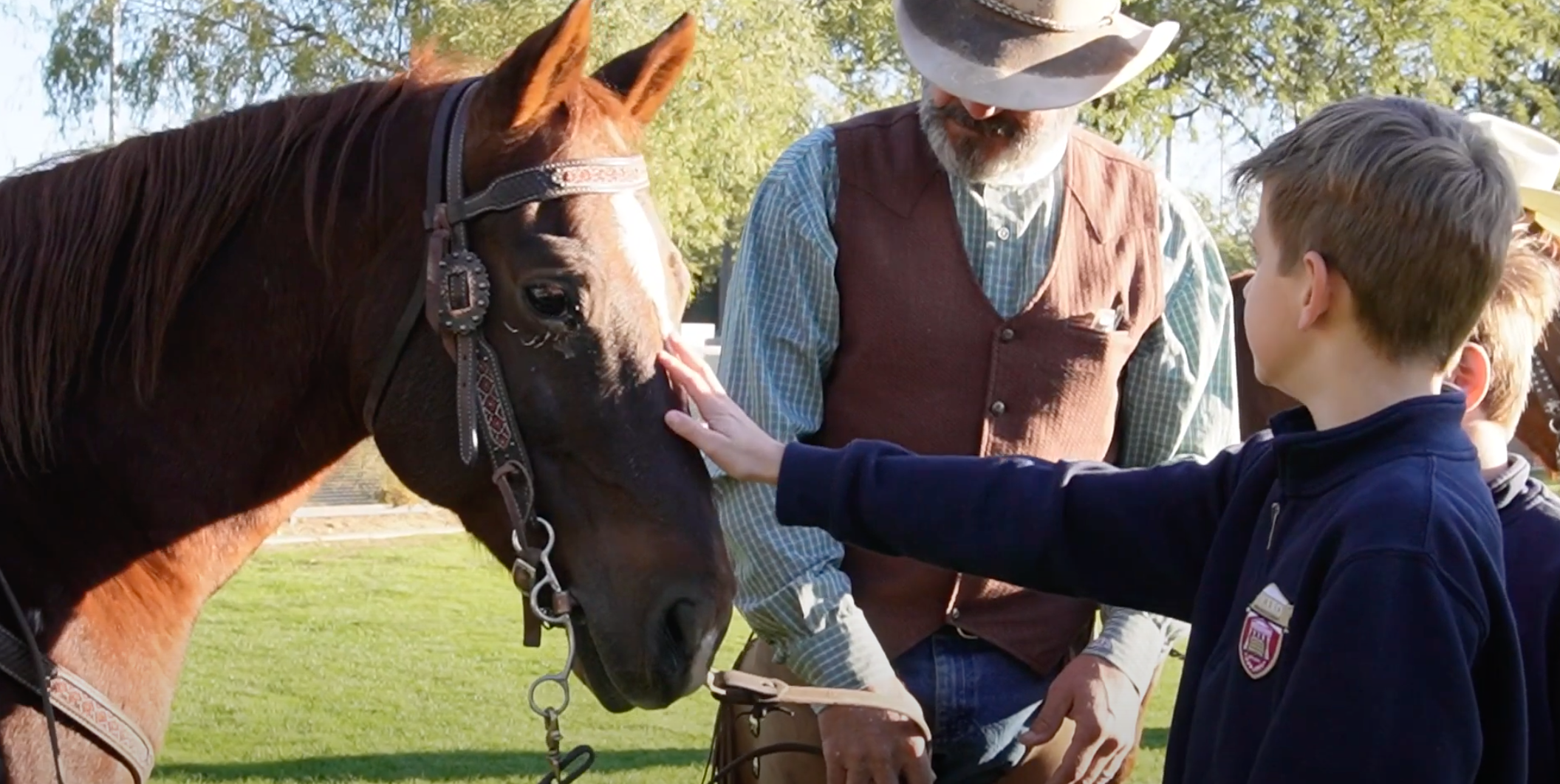 Cicero Prep Celebrates Literature with Cowboy Breakfast Facebook Twitter Email This Post Cicero Prep January 6, 2025 For the second year in a row, Cicero Prep hosted a special Cowboy Breakfast inspired by the classic novel “Shane” for the sixth graders, who recently read the book as part of the curriculum. “Shane” is a western novel by Jack Schaefer published in 1949. The novel is a tale of a cowboy navigating life in early 1800s Wyoming, and features gunslinging, drama, and all the hallmarks of classic cowboy lore. Inspired by the themes of the book, the breakfast was organized as an event to bring the spirit of “Shane” to life. This year, the event grew into a full-scale celebration that combined rustic “cowboy fixins” of flapjacks, bacon, and sausage with hands-on “Old West” experiences, giving students a unique taste of cowboy culture. One of the most exciting additions was the presence of live horses, courtesy of a local philanthropy group, the Scottsdale Charros. The group, which raises funds for education and horse rehabilitation, played a big role in making the event memorable. A Charros member arranged for horses to be brought to the school, giving students a rare opportunity to interact with these large animals. For many, it was their first time seeing a horse up close. Students learned about horse safety, including how to approach and walk around them, and had the chance to pet them under supervision. They also brought a roping station, where students practiced their skills with lassos, mimicking the techniques of roping a bull, but this time with a much safer roping dummy, as opposed to a real bull, of course. “Last year we just had the breakfast part of it but there weren’t all these activities in addition,” shared Chelsea White, a Lit Comp teacher at the academy. “So, it’s really fun coming out here and being blown away!” Blake, a sixth grader who donned a large cowboy hat for the event, was impressed by the incredible sense of community that made it all possible. “I thought it was pretty cool that a bunch of people just came out here and did this for all the sixth graders,” he shared in gratitude. “I think my favorite part would just be… the horses out here that people brought out and that people came together to work to make food for us.” PSO President Amanda Campo shared just how much work went on behind the scenes to pull off this amazing event. “There was probably 30 people that had their hands in this and it literally took everyone to make it happen. Then this morning we were all here between 6:00 and 7:00 a.m. putting it all together and the teachers came out and helped and students came out to help. It literally took our whole community to do it,” she explained. The breakfast’s success left a lasting impression on everyone involved at Cicero Prep. Literature is a foundational part of a Great Hearts education, and special activities like this one help to bring that literature to life for our young scholars. It was truly a day of learning, fun, connection, and a celebration of the cowboy spirit found in “Shane” that students will remember for years to come. Do you have a story or know of a story that you would like to see featured at Great Hearts? Please contact jmoore@greatheartsamerica.org.