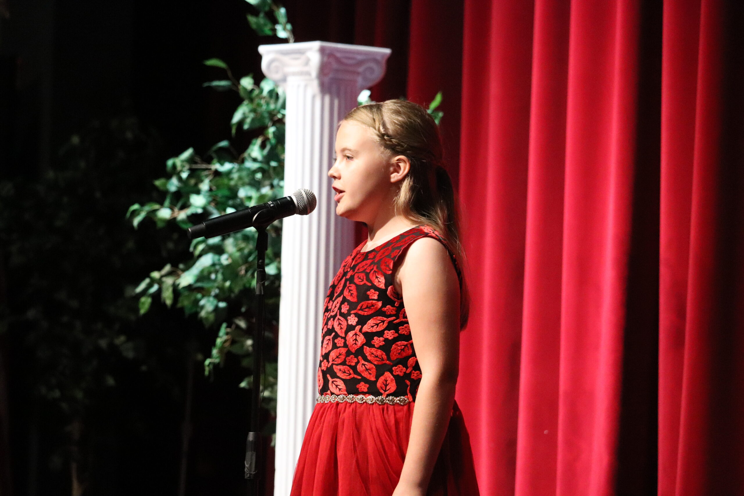 Meet the 2026 Great Hearts Bard Facebook Twitter Email This Post Great Hearts Academies April 13, 2026 Poetry was celebrated at the annual Great Hearts Bard in the Marley Center for Performing Arts at Maryvale Prep. 13 finalists, ranging from grades 3rd through 5th, recited a piece they had been rehearsing and reciting for the last several months, in front of their families, friends, faculty, and a panel of judges. Cora Patient, a fourth grader from Great Hearts Roosevelt was named the 2026 Bard with her winning recitation of Mr. Flood’s Party by Edwin Arlington Robinson. “It’s a celebration of Beauty because these students have not only learned these poems, but they they’ve committed them to memory,” shared Taylor Saar, the coordinator of this year’s event. “And these beautiful words that have lasted the test of time are now being brought to life by these students who have come to know and love these poems. That is just such a special thing and worth celebrating.” Scholars who compete as finalists at the regional competition are third, fourth, or fifth graders who have competed and won at their school level Bard competitions. There are several categories that we’re looking for,” explained Cammie Passey, one of the judges for the Great Hearts Bard. “Which include things like stage presence, intonation, their voice and pacing. Do their facial expressions or their vocal inflections or their actions actually overshadow the poem? There’s a difference between acting and a poetry recitation. And the very last overall score – was the performance greater than the sum of its parts?” Serving as judges alongside Passey, the National Director of Curriculum for Lower Schools at Great Hearts America, was Amy Gottry, Regional Manager of Professional Development; Heather Washburn, Vice President of Achievement and Accessibility; and Carol McNamara, Director of Great Hearts Institute. Saar served as an accuracy judge. Patient said she chose her poem because the subject matter was moving to her. “It was touching to me, and it was sad and just something that moved me,” she said. “And it’s about Eben Flood who’s an old man and all his friends and family and relation are all dead because he’s old and everybody else is gone.” “The thing that really stood out for us with Cora was the nuance she brought to the performance,” said Passey. “It was a pretty complex poem, and it was a poem about the melancholy and maybe even the poignancy of aging. And she was able to draw the audience in. I felt myself leaning in. I could feel my colleagues leaning in while she was reciting. So, there was just a masterful nuance and delivery that she was able to capture in her recitation.” While Patient said she was shocked and surprised by the win, she is not the only Bard in her family. She is following in the footsteps of her sister, Eleanor Patient, who was named the Great Hearts Bard in 2024. “My sister Eleanor Patient in 2024 won. Eleanor lost in third grade, but she won in fourth grade and I did the exact same thing,” she shared. Charley Colon, a third grader from Archway Lincoln, was runner-up position for her recitation of I Am the People, the Mob by Carl Sandburg. It was a tough competition with many notable recitations from the rest of the talented finalists including: Reave A., a fifth grader at Archway Chandler, who recited Casabianca by Felicia Hemans. Benson G., a fifth grader at Archway Glendale, who recited The Tale of Custard the Dragon by Ogden Nash. Leif H., a fourth grader at Great Hearts Christian Academies, who recited Psalm 139:1-24 by psalmist David from the Bible. Winston M., a fifth grader from Archway Veritas, who recited The Tale of Custard the Dragon by Ogden Nash. Nora N., a fourth grader from Archway North Phoenix, who recited Casey at Bat by Ernest Lawrence Thayer. Myra G., a fourth grader at Archway Trivium, who recited The Embarrassing Episode of Little Miss Muffet by Guy Wetmore Carryl. Dylann S., A fifth grader at Archway Cicero, who recited Lift Every Voice and Sing by James Weldon Johnson. Erica B., a fifth grader at Maryvale Prep, who recited The Spider and the Fly by Mary Howitt. Zachary M., a fifth grader at Great Hearts Anthem, who recited Television by Roald Dahl. Lara R., a fifth grader at Archway Scottsdale, who recited The Walrus and the Carpenter by Lewis Carroll. Cara-Maria W., a fifth grader at Archway Arete, who recited The White Knight’s Song by Lewis Carroll. “Something like the Bard competition is deeply important culturally within the Great Hearts Network and our schools,” shared Passey. “And a big reason why it’s important is because it gives students an opportunity to reach for excellence.” Join us in congratulating all of our finalists. Do you have a story or know of one that you would like to see featured at Great Hearts? Please contactjmoore@greatheartsamerica.org. Submit a student application to a Great Hearts Academy by visiting: https://www.greatheartsamerica.org/enroll/. Great Hearts, Great Stories Monthly Roundup Receive monthly news and updates by subscribing to our newsletter. Name(Required) First Last Email(Required) Enter Email Confirm Email NameThis field is for validation purposes and should be left unchanged.