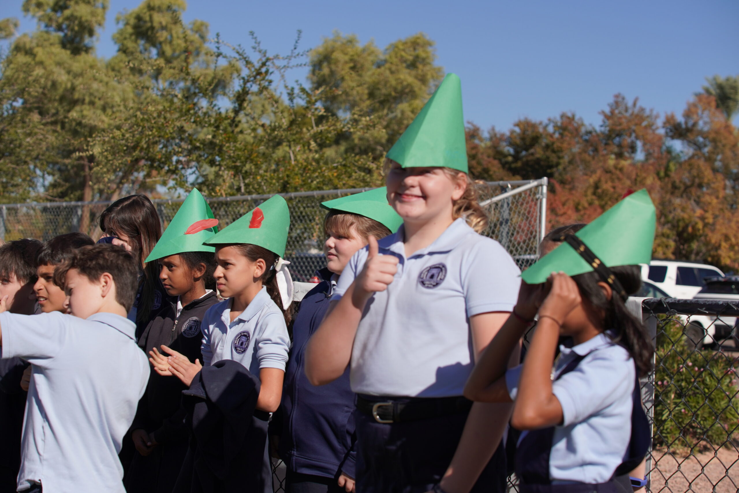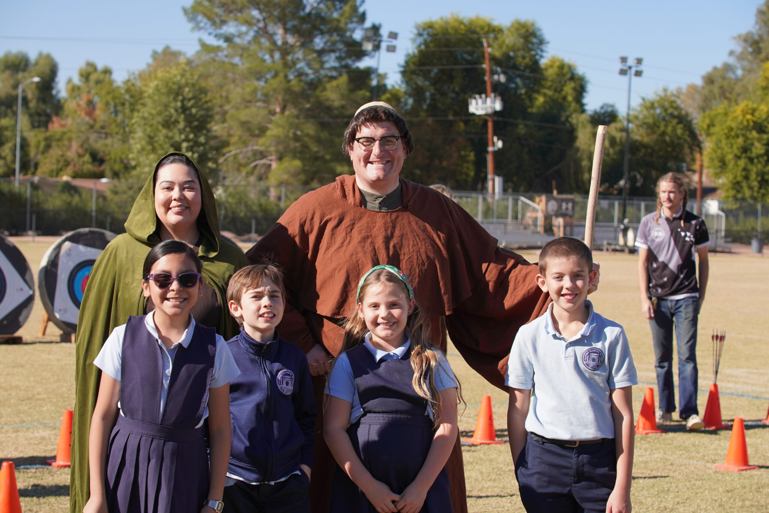 Robin Hood Day Brings Literature to Life at Archway Veritas Facebook Twitter Email This Post Archway Veritas February 17, 2026 The campus at Archway Veritas was again transformed into the Sherwood Forest for Robin Hood Day. This annual event serves as the capstone event to the fourth-grade studies of medieval history and celebrates their reading of The Adventures of Robin Hood by Roger Lancelyn Green. Many of us remember some iteration of Robin Hood from our childhood. This character originally surfaced in English folklore before being featured in literature and theatre and eventually having multiple Hollywood adaptions landing the big screen. According to legend, he was a highly skilled archer and swordsman. He is an iconic character, traditionally dressed in green who “robbed the rich to give to the poor.” “I am dressed as Friar Tuck, who’s a famous character from the stories of Robin Hood,” explained Trevor Guyette, a fourth-grade teacher at Archway Veritas. “In order to help the students get into the spirit of the day, teachers dress up as different characters.” To add to the ambiance, wanted posters were hung throughout the hallways of the academy. Games and activities were all themed around the story of the heroic outlaw. “We’ve got a station called Capture the Gold, which is a modified version of Capture the Flag. It lets students think about strategy and teamwork,” shared Guyette. “And then they also get to make a Robin Hood hat, the classic green with a red feather.” But arguably, according the Guyette, the most popular part of the celebration was the archery station. “Robin Hood famously is a long bowman from around the 1200s and so students are practicing their long bowmanship. In case of invasion by Normans or Saxons, we can fight them off,” he joked. To celebrate the more heroic side of the character, Guyette said they had a station devoted to charity. “Even though he’s an outlaw, Robin Hood is dedicated to helping people in need. So, we partner with a local charity to make hygiene kits for people who need them and write notes of encouragement.” But celebrations like this that bring literature to life for our scholars don’t just happen. They take a lot of preparation and hard work from parent volunteers leading up to and during the event. Guyette said it was a treat as a teacher to be able to focus on the experience with the students and not have to deal with the logistics of the event. “It’s really nice to be able to show up to be able to focus on the costume and getting the kids from place to place and just be able to kind of enjoy the day and not have to run everything. So, we’re really grateful for everyone who’s helping today.” At the end of the day, it is all about sparking that joy and wonder in literature. “It really just helps them enjoy literature,” said Guyette. “We read literature in fourth grade especially for enjoyment. We do get into themes and things like that, but it really is just fun, right? learning stories that are essential. Characters from Robin Hood are mentioned in every kind of media, every kind of conversation. So, just being able to have that memory associated with the book, it’s really important and special.” Now, my friends, let us pass in peace back to the Forest. We mean no harm to any here save those who would harm us. And if any is to suffer unjustly, come one of you without fear into Sherwood and there ask for Robin Hood! – Roger Lancelyn Green from The Adventures of Robin Hood Do you have a story or know of one that you would like to see featured at Great Hearts? Please contact jmoore@greatheartsamerica.org. Submit a student application to a Great Hearts Academy by visiting: https://www.greatheartsamerica.org/enroll/. Great Hearts, Great Stories Monthly Roundup Receive monthly news and updates by subscribing to our newsletter. Name(Required) First Last Email(Required) Enter Email Confirm Email NameThis field is for validation purposes and should be left unchanged.