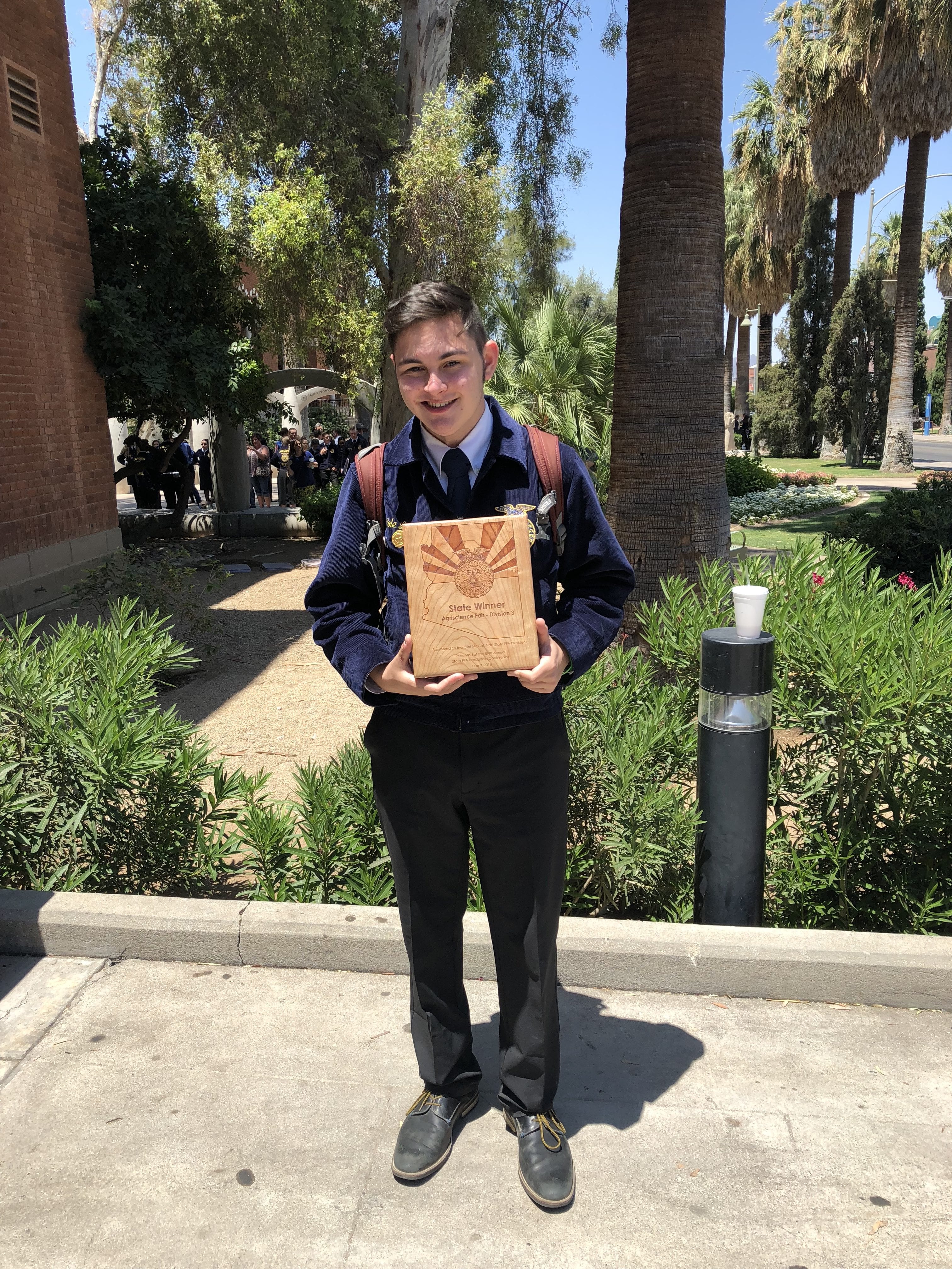 Trivium Prep’s Cole Lozon is headed to the FFA national science fair Facebook Twitter Email This Post Trivium Preparatory Academy June 11, 2018 Trivium Preparatory’s Cole Lozon won the Arizona Future Farmers of America (FFA) Science Fair and is headed to the National FFA Convention to represent Arizona in the national science fair. The FFA’s mission is to make a positive difference in the lives of students by developing their potential for premier leadership, personal growth and career success through agricultural education. Below is a letter of gratitude from Cole to the Trivium Preparatory community: “I am pleased to inform you that this morning I was announced as the state winner for the FFA science fair and that I will be going to the National FFA convention to represent Arizona and Trivium in the national science fair. The road to this success was rough and felt like a vertical climb sometimes. But though all the hardships, through all the practice presentations, the late nights at the school doing research, through all the drafts of my paper, you all have been there supporting me and believing in me. Two years ago, when I went to the state science fair my judge told me that my project was “very simple and looks like an elementary school project” and that “I shouldn’t bother continuing it”. That was the seed of my success and your support was the water. The amount of time, help, and resources donated to this project shows what a strong community Trivium has. Without your support, I would have given up after that science fair. Without your belief in me, I wouldn’t have had the perseverance to work countless hours on it. Without your guidance, I would have been lost on the way to success. I did not win the science fair by myself, WE won the science fair together. Together we climbed to the top, and we proved that judge wrong. Thank you, Ms. Briggs, for being my advisor for this project. Without you I would have never gone to the science fair two years ago. Thank you for all the time you’ve put into this project. Thank you for being there with me in my failures to help pick up the pieces and for pushing me to keep tying. Mrs. Zimmerman, thank you for introducing me to the wonderful world of FFA. You have opened so many doors for me that I never knew existed. Thank you for helping submit paperwork, and for your enormous amount of belief you have for me as a member. You helped guide me to victory road and I am so thankful for that. Thank you for always being there to answer my many questions and for supporting me every step of the way. Mrs. Vasiloff, thank you for your constant support of the FFA organization. Without your support, I would have no way of reaching my goals. Thank you for allowing me to use your school as a base for all my operations. Thank you for allowing me to stay late to gather research and for allowing me to come in during weekends and holidays. Mr. Friedrich and Mrs. Brinker, thank you both for lending me your labs to conduct research. Mr. Friedrich, thank you for allowing me to use lab equipment and for answering questions I have. Mrs. Brinker, thank you for helping me prepare my presentation, and for editing and grading my paper. Thank you for answering random legal questions and for meeting with me before and after school to help with my project. Mr. Boettger, Mr. Wolstenholme and Ms. Tambornino, thank you all for being my board of judges, your input helped refine my project. Because of your input my project went from good to excellent. I am so blessed to have such a supporting community. Thank you all again so much, and I am so happy that I have the privilege to represent trivium at the national science fair! Thank you, Cole Lozon”